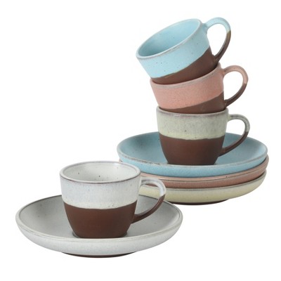 Gibson Elite William Crest 8pc Espresso Cup & Saucer Set, Reactive Glaze Finish, Stoneware Coffee Cups, Microwave & Dishwasher Safe