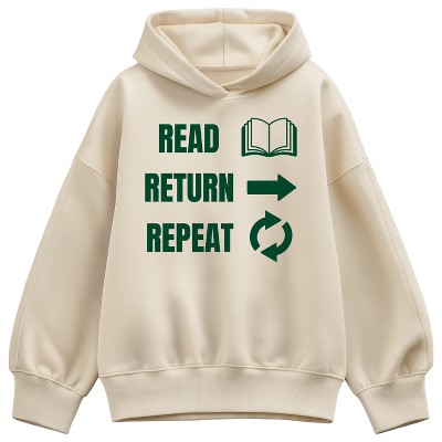 Women's Instant Message Read, Return, Repeat Oversized Fleece Hoodie Sweatshirt - Cream - Small