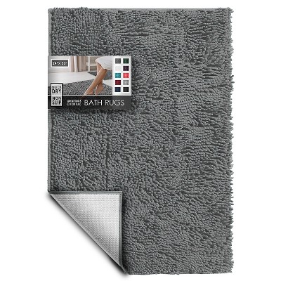 Summit Adventure CHENILLE BATH RUG 30X20" - EXTRA SOFT ABSORBENT - RUBBER BACKING NON-SLIP - MACHINE WASHABLE QUICK-DRY - SHOWER - GREY