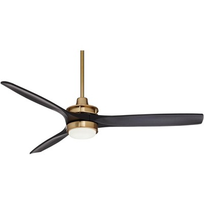 Casa Vieja 52" Windspun Modern Indoor Ceiling Fan 3 Blade LED Light Remote Control Soft Brass Finish Motor Matte Black Wood Blades Bedroom Living Room