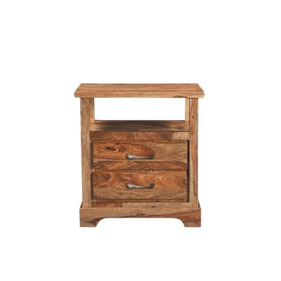 HomeRoots 27" Brown Solid Wood Two Drawer Nightstand