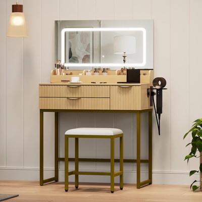 - wood and metal makeup vanity