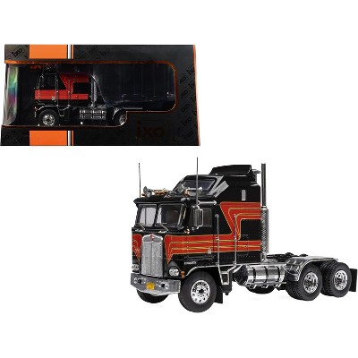 1976 Kenworth K100 Aerodyne Truck Tractor Black with Red Stripes 1/43 Diecast Model by IXO Models