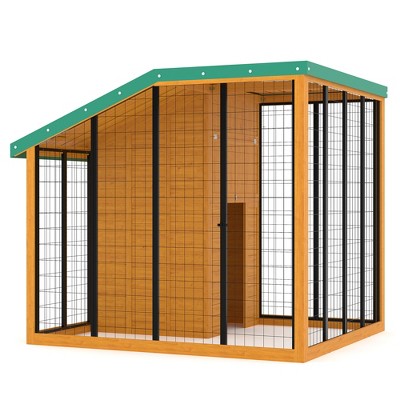 Cedar Wood Large Dog Kennel with Galvanized Steel Roof, Lockable Gate, Feeding Door, Doghouse Back Door & Water Food Tray