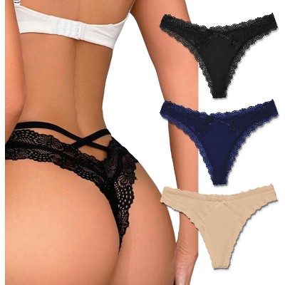 Avidlove Womens Underwear Thongs Floral Lace Bikini Panties Criss Cross Back Splice Tangas 1-3 Packs