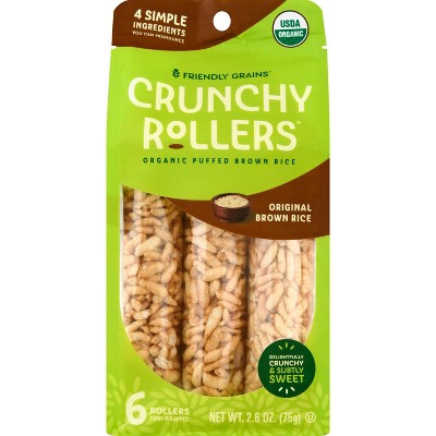 Friendly Grains Crunchy Rollers, Puffed Brown Rice, Original, 6 each - Case of 9 - 2.6 oz