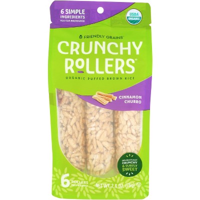 Friendly Grains Crunchy Rollers, Puffed Brown Rice, Cinnamon Churro, 6 each - Case of 9 - 2.6 oz