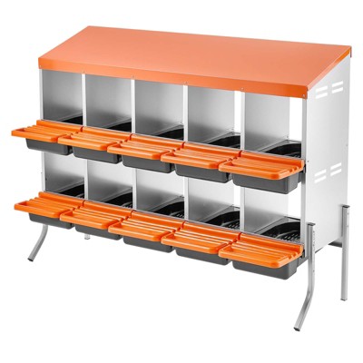 VEVOR Chicken Nesting Boxes, 10 Compartments, with Support Legs, Easy Egg Collection, Galvanized Steel and High-Strength Plastic,Silver & Orange
