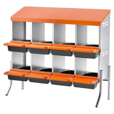 VEVOR Chicken Nesting Boxes, 8 Compartments, with Support Legs, Easy Egg Collection, Galvanized Steel and High-Strength Plastic, Silver & Orange