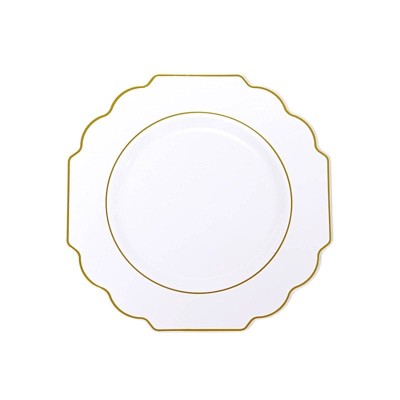 Home Collection 10 Pack 12" Disposable Baroque Plastic Dinner Plates with Gold Rim