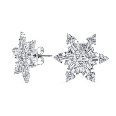 Bling Jewelry Holiday Party Art Deco Style Christmas Frozen Winter Cubic Zirconia Encrusted CZ Snowflake Stud Earrings Sterling Silver