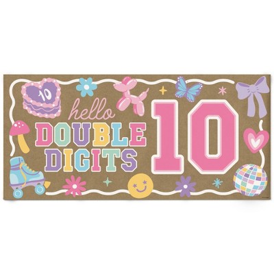 Big Dot of Happiness Preppy 10th Birthday Girl Kraft Paper Banner, Hello Double Digits Pastel Birthday Party Welcome Printed Brown Paper – 1 Count