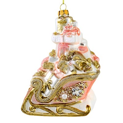 December Diamonds 6.0 Inch Pink Sleigh With Gifts Christmas Tree Ornament , Snow Gifts Presents (1PC)