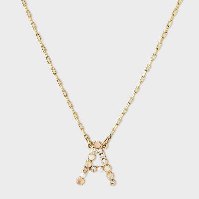 14k Gold Dipped Opal Pearl & Cubic Zirconia Letter Initial Necklace - A New Day™ Gold