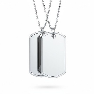 Bling Jewelry Set of 2 X-Large Army Military Dog Tag Pendant Necklace Sterling Silver Long Bead Ball Chain 20 Inch