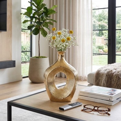 Donut Vase for Living Room Decor - Textured Modern Ceramic Flower Vase for Home, Bedroom Vanity, Office, and Table Accents