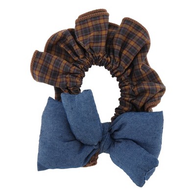 Unique Bargains Patchwork Denim Hair Ties Blue Brown 1 Pc