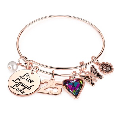 Turandoss Birthday Bracelet Gift for Girls Women, Year Old Gifts for Girls Kids, Heart Number Charm Bracelets, Happy 25th Birthday for Mom Wife Her