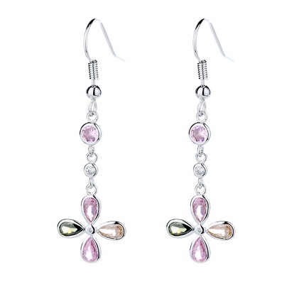 Sterling Silver Multi-Colored Crystal Floral Drop Earrings