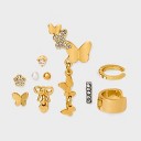 Steeltime Ladies 18k gold plated stainless steel and simulated diamonds studs/huggies earrings set