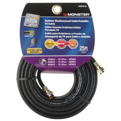 Monster 140039-00 Weatherproof RG6 Video Coaxial Cable, 25'