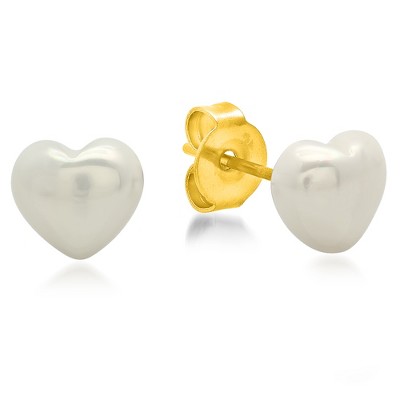 Guili 14K Gold Plated Sleek Heart Stud Earrings with Clear Cubic Zirconia Offer a Romantic Touch with Subtle Sparkle for Effortless Daily Elegance