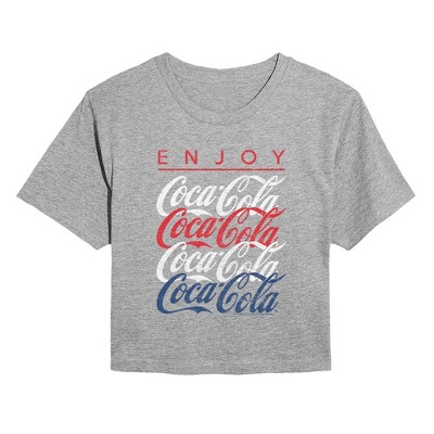 Women's Coca-Cola Red White and Blue Americana Cropped Graphic T-Shirt - Heather Grey - Medium