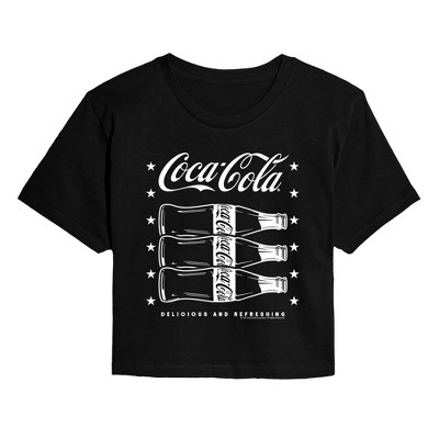 Women's Coca-Cola Americana Bottles Cropped Graphic T-Shirt - Black - 2 X-Large