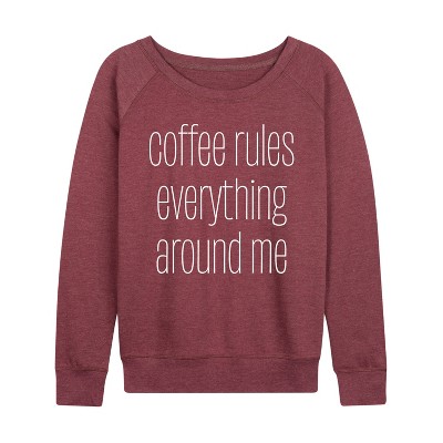 Women's - Instant Message - Coffee Rules Everything Lightweight French Terry Wide Neck Long Sleeve Graphic Shirt