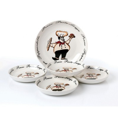 Home Collection Set of 4 10oz White & Blue Ceramic Bowls