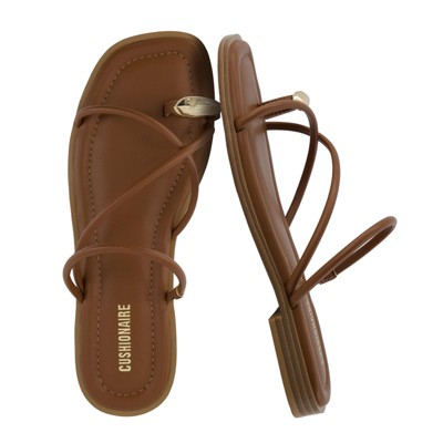 CUSHIONAIRE Venue Women’s Strappy Toe-Loop Slide Sandals with Gold-Tone Accent & Memory Foam Comfort