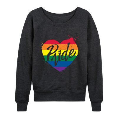 Women's - Instant Message - Pride Heart Lightweight French Terry Wide Neck Long Sleeve Graphic Shirt