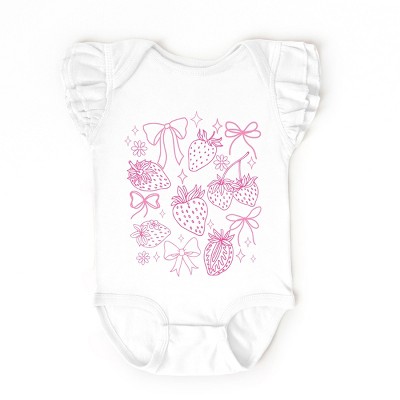 Coquette Strawberries Outlined - Baby Flutter Sleeve Bodysuit