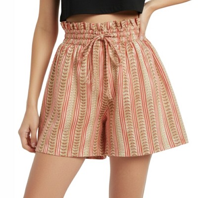 Artyska Women’s Printed Paperbag Waist Shorts with Tie Belt & Pockets