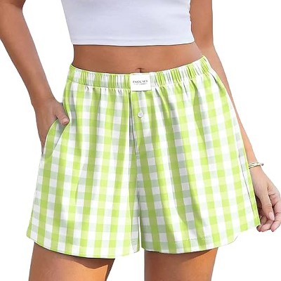 Ekouaer Women Gingham Shorts Y2k Boxer Lounge Pajama Shorts 2026 Summer Casual Beach Vacation Outfit with Pockets