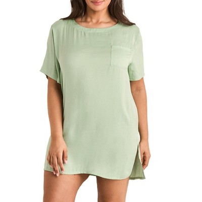 Del Rossa Women's Satin Solid Color Nightshirt, Boyfriend Style Sleepshirt
