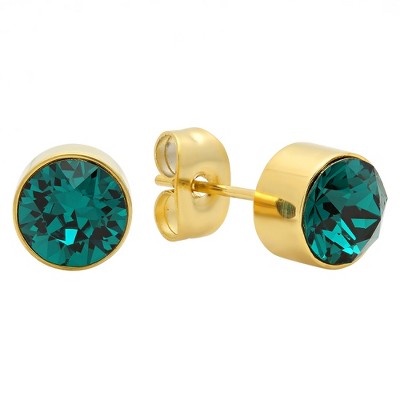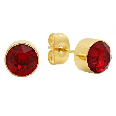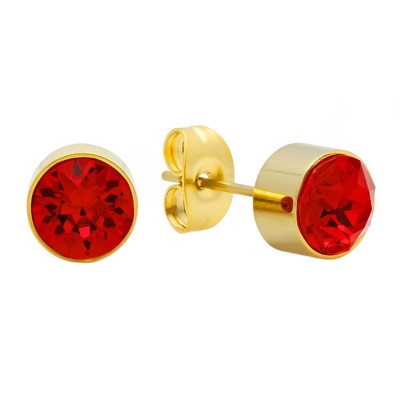 Steeltime Ladies 18kt gold plated stainless steel stud earrings with January adorned with swarovski crystals garnet birthstone