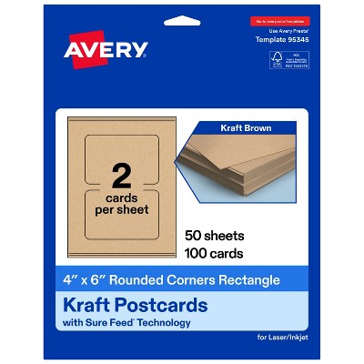 Avery Kraft Brown Postcards, 4" x 6" Rectangle Rounded Corners