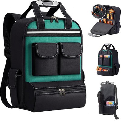 17 Inch Gray Oxford Fabric Tool Backpack with Plastic Base, Heavy Duty Waterproof Storage Bag for Home, Garage, Worksite & Outdoor Use