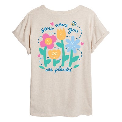Women's Peanuts Grow Where You Are Planted Oversized Graphic T-Shirt - Birch - X-Large