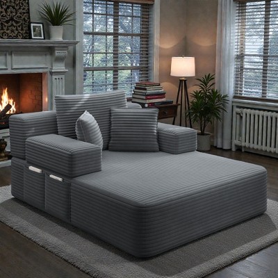 Mshliw Luxurious Plush Corduroy Chaise Lounge with 3 Pillows, Storage Pocket, Frameless Design,Convertible Sofa Bed for Small Spaces