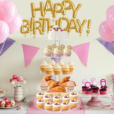 Slickblue Cupcake Tower Stand – Blue or Pink Cardboard, 3-Tier Party Dessert Display for Birthdays