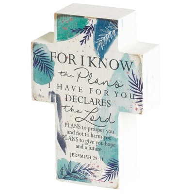 Dicksons Know The Plans I Have For Your Blue Floral 4 inch MDF Table Top Cross