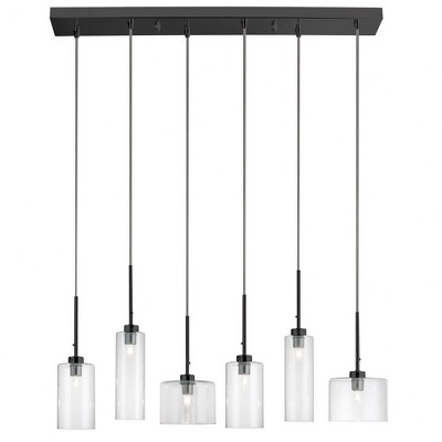 VAXCEL Kassidy 4L Black Industrial Linear Teardrop Chandelier Island Pendant Light Fixture Clear Glass