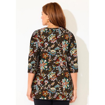 Woman Within Petite Perfect Three-Quarter Sleeve V-Neck Tee