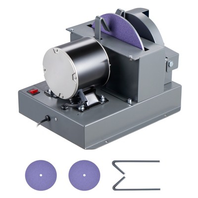 VEVOR Lawn Mower Blade Sharpener, 1/2HP Lawnmower Blades Grinder with 7" Flap Wheel & 9" Ceramic Grinding Wheel, 30° or 40°,Gray