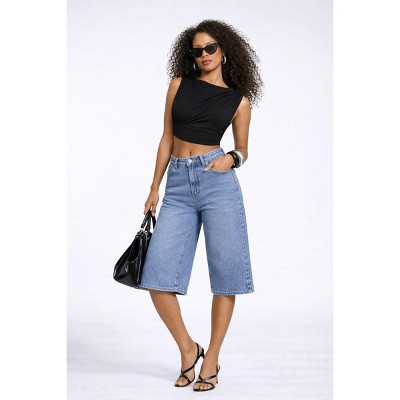 Cupshe Women's High Waisted Smocked Denim Shorts