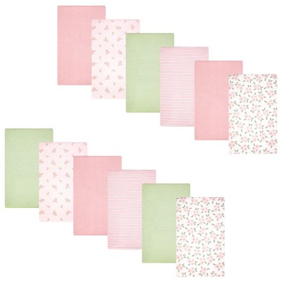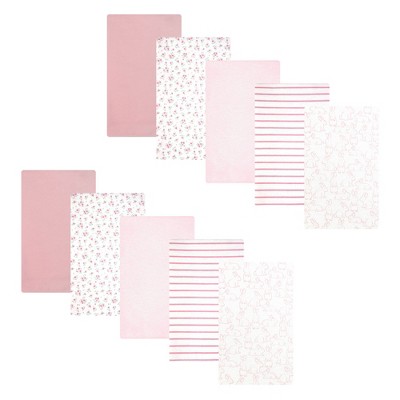 Hudson Baby Girl Cotton Poly Flannel Burp Cloths 10-Pack, Wispy Wild Flower Bunny, One Size