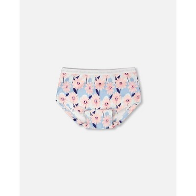 Deux par Deux Girl Organic Cotton Boyshort Panty Blue Smiling Flower Print
