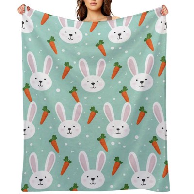 Easter Day Rabbit and Carrot Pattern Throw Blanket Soft Warm Cozy Lightweight Decorative Blanket for Couch, Bed, Sofa, Travel 50x60 inches